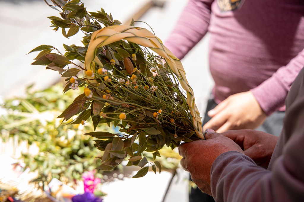 A diferencia de otras familias, la de Lorena no sale del municipio para poder comprar el laurel y la manzanilla para los ramos, pero sí acuden a otras ciudades como San Luis Potosí o León para adquirir otros productos alusivos a la temporada.