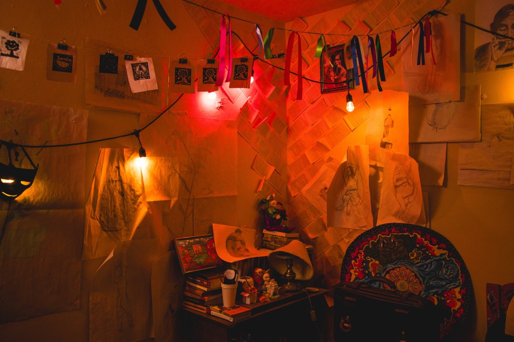 Isra tiene 28 años y es originario de San Felipe. Expone que dos cosas que lo definen son la hiperactividad y su amor por explorar la vida. Uno de sus intereses ha sido construir otra forma de arte que pudiera ser más inmersivo, como “una burbuja en la que las personas sean atrapadas y absorbidas por esa experiencia artística”, ahí comenzó su indagación por los espacios, los símbolos y cómo es que los lugares crean experiencias interiores con el individuo.