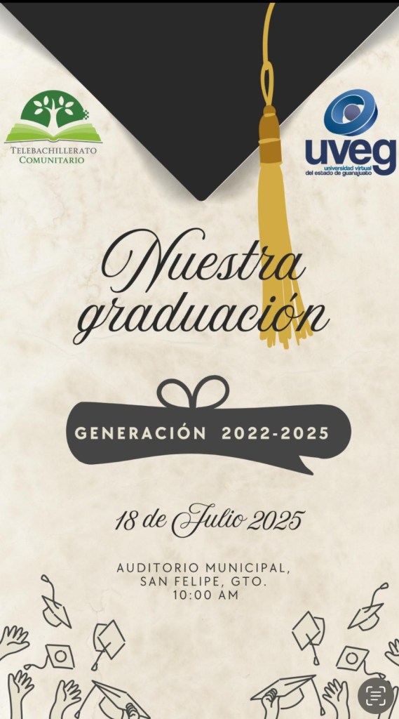 La Universidad Virtual del Estado de Guanajuato (UVEG) llevará a cabo el día de mañana 18 de julio del presente, la ceremonia de graduación de 264 alumnas y alumnos de 30 Telebachilleratos Comunitarios, ubicados en los municipios de San Felipe y Ocampo.